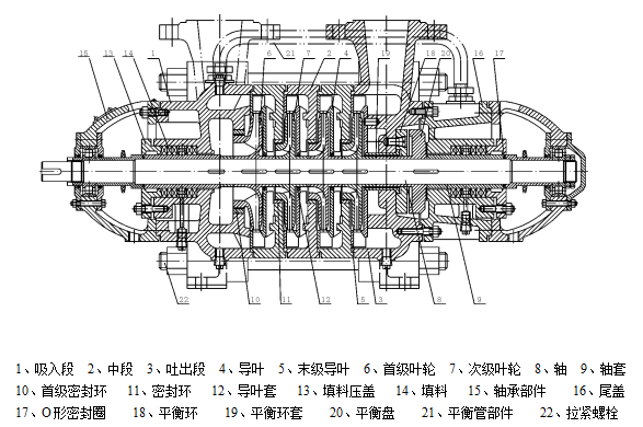 D、DM、DF型多級離心泵結(jié)構(gòu)圖
